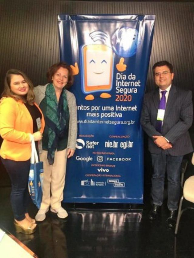 Na foto: Deborah Borges (Instituto DimiCuida), Dra. Evelyn Eisenstein (ESSE Mundo Digital), Thiago Tavares (Presidente da Safernet Brasil).